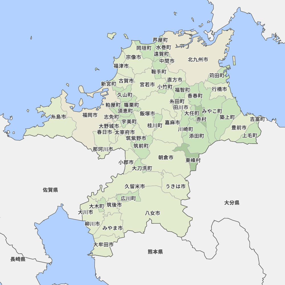 赤村|朝倉市|芦屋町|飯塚市|糸島市|糸田町|うきは市|宇美町|大川市|大木町|大任町|大野城市|大牟田市|岡垣町|小郡市|遠賀町|春日市|粕屋町|嘉麻市|川崎町|香春町|苅田町|北九州市|鞍手町|久留米市|桂川町|上毛町|古賀市|小竹町|篠栗町 志免町 新宮町 須恵町 添田町|田川市|太宰府市|大刀洗町|筑後市|筑紫野市|築上町|筑前町|東峰村|那珂川市|中間市|直方市|久山町|広川町|福岡市|福智町|福津市|豊前市|水巻町|みやこ町|みやま市|宮若市|宗像市|柳川市|八女市|行橋市|吉富町